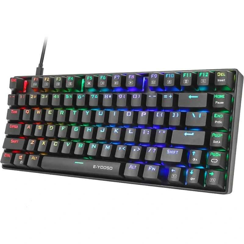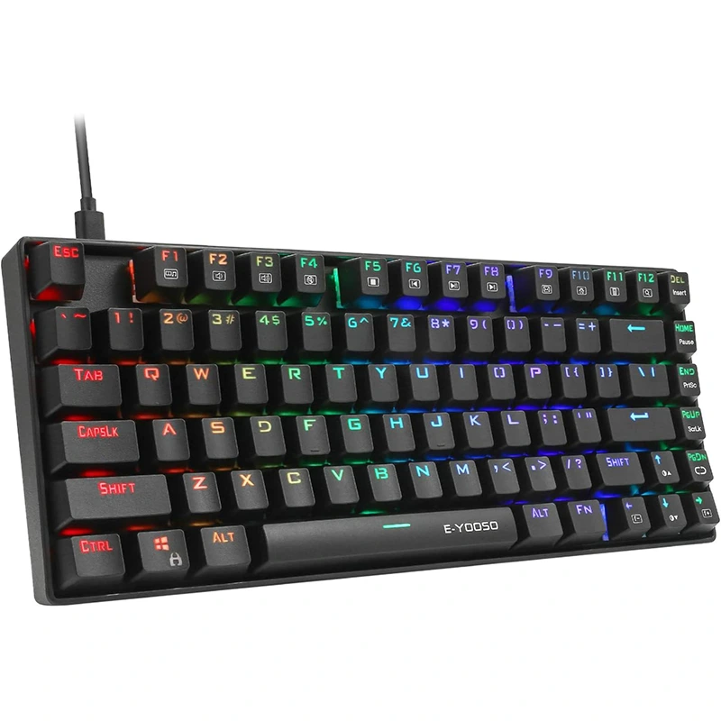 E-Yooso Z-88 PRO 60% Yığcam 81 Düymələr RGB Mexanik Mavi Açar LED Arxadan İşıqlandırılmış Oyun Klaviaturası, Suya Davamlı və Xarakteriklik üçün Anti-Ghosting ilə