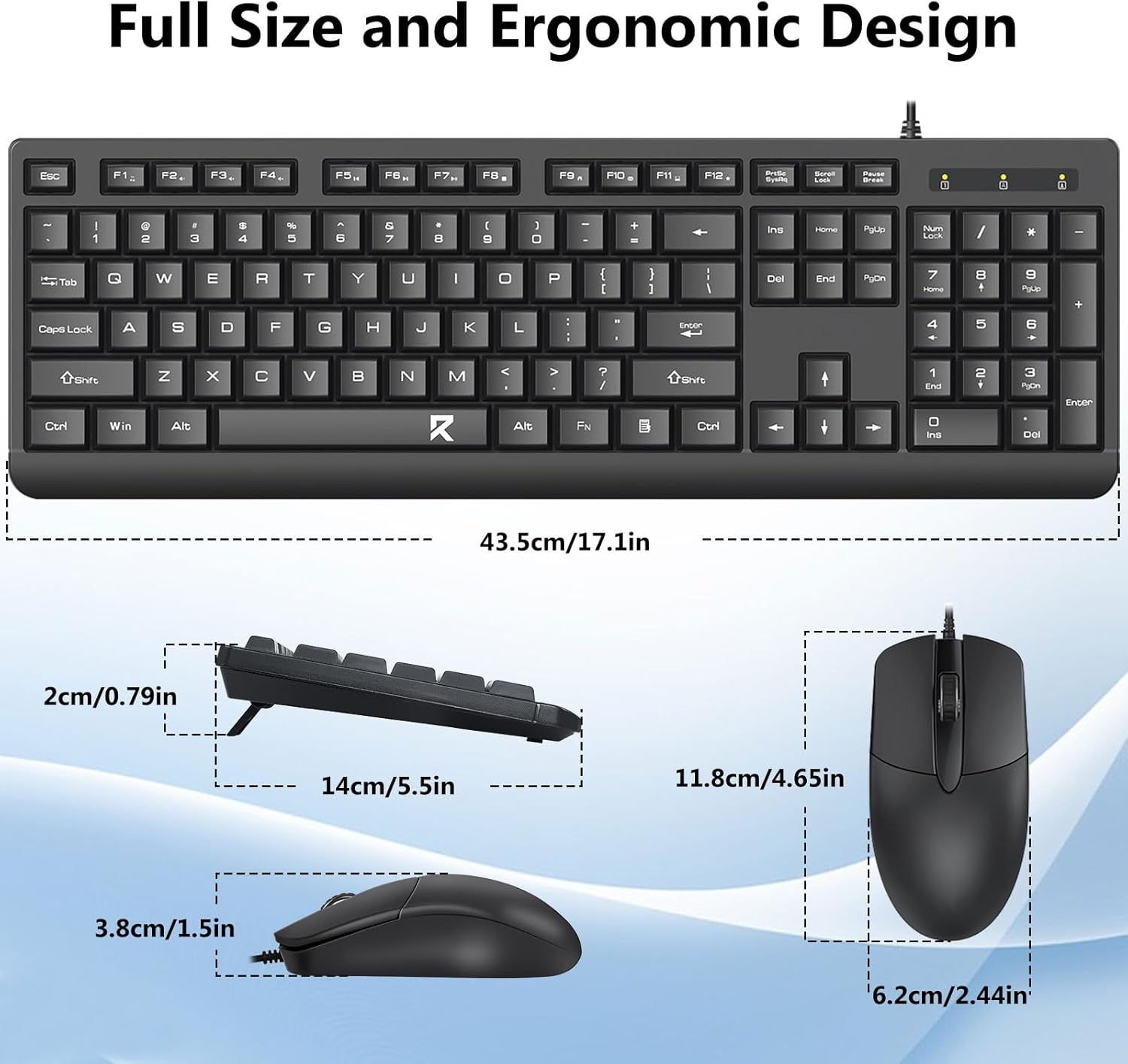 CHUANGQUAN Qara BC7543 Simli Klaviatura və Siçan Combo uzunmüddətli rahatlıq və səmərəliliklə ofislər, təhsil və gündəlik hesablamalar üçün ideal olan rəvan yazma, dəqiq nəzarət və etibarlı USB bağlantısı təmin edir.