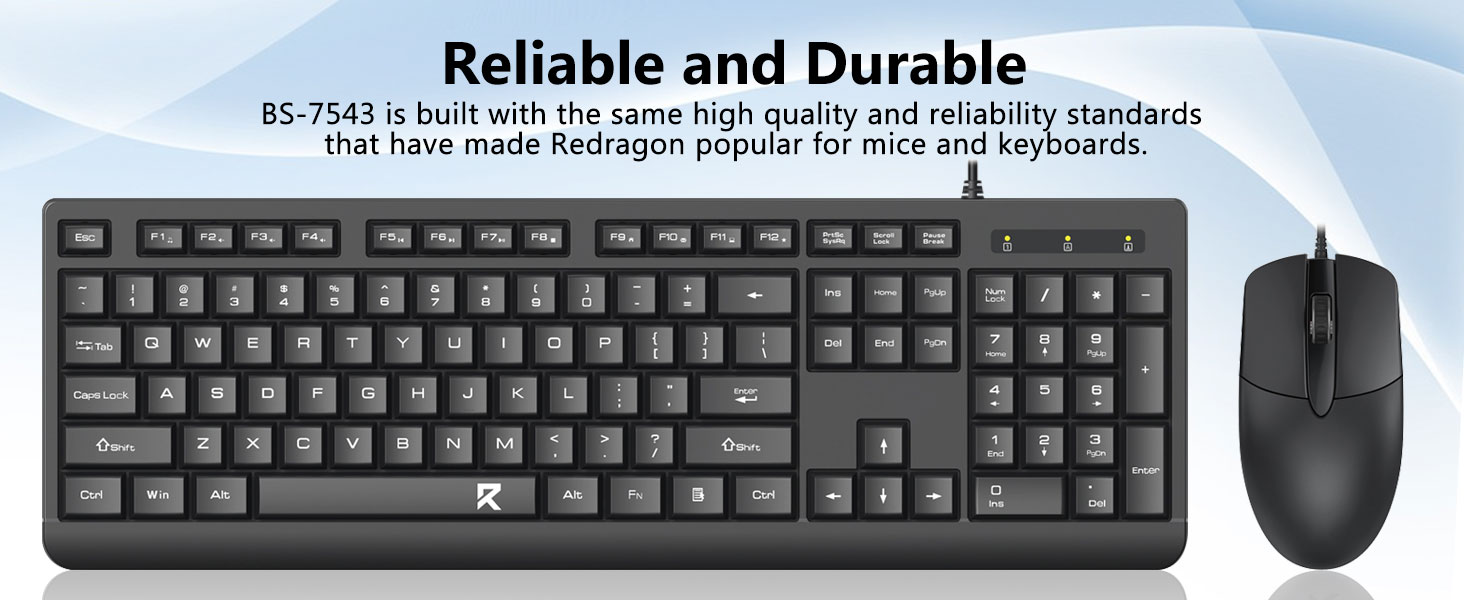 Uzunmüddətli etibarlılıq üçün nəzərdə tutulmuş klaviatura və siçan gündəlik istifadəyə tab gətirə bilən davamlı materiallardan hazırlanıb. Klassik qara rəng ofis iş stansiyalarından tutmuş ev masalarına qədər geniş çeşidli kompüter qurğularını tamamlayır.