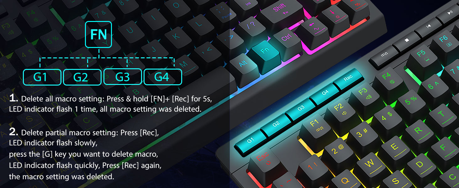 Həqiqi RGB arxa işığı -4 Taxta Makro düymələri (G1 ~ G4) proqramlaşdırıla və heç bir əlavə proqram olmadan tez bir zamanda uçur. Açarları redaktə etmək asandır və müxtəlif makrosları edə bilər.