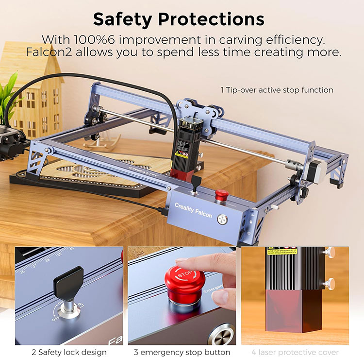 · 【Yeni Təkmilləşdirmə və Güclü Maşın】Creality Falcon Pro 10W lazer oyma maşını 72W maşın gücünə və 10W çıxış gücünə malikdir. 10000 mm/m-ə qədər sürətlə bir keçiddə 5 mm basswood taxtasını, 12 mm taxta lövhəni və ya 3 mm qara akril təbəqəni kəsə bilər. O, həmçinin oyma işlərini asanlıqla yerinə yetirmək üçün hava yardımı ilə təchiz edilmişdir. Lazer Sinfi: Sinif 4