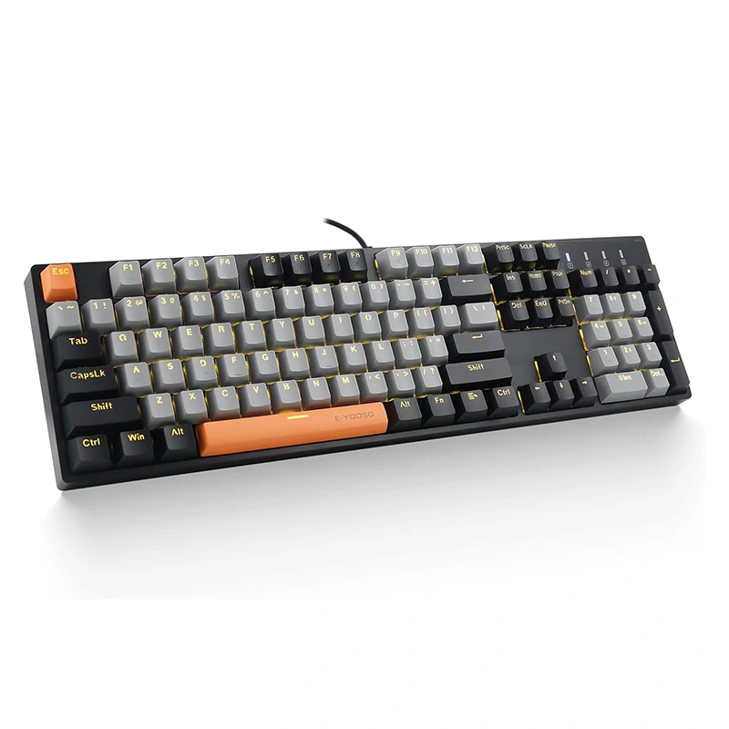 E-YOOSO Z-14 104 Açar Tam Ölçülü Bərk Sarı Arxadan İşıqlandırılmış Qırmızı Açarlı Mexanik Oyun Klaviaturası .Yaxşı tekstura, sərfəli qiymət, oyun oynaya və birlikdə işləyə bilər