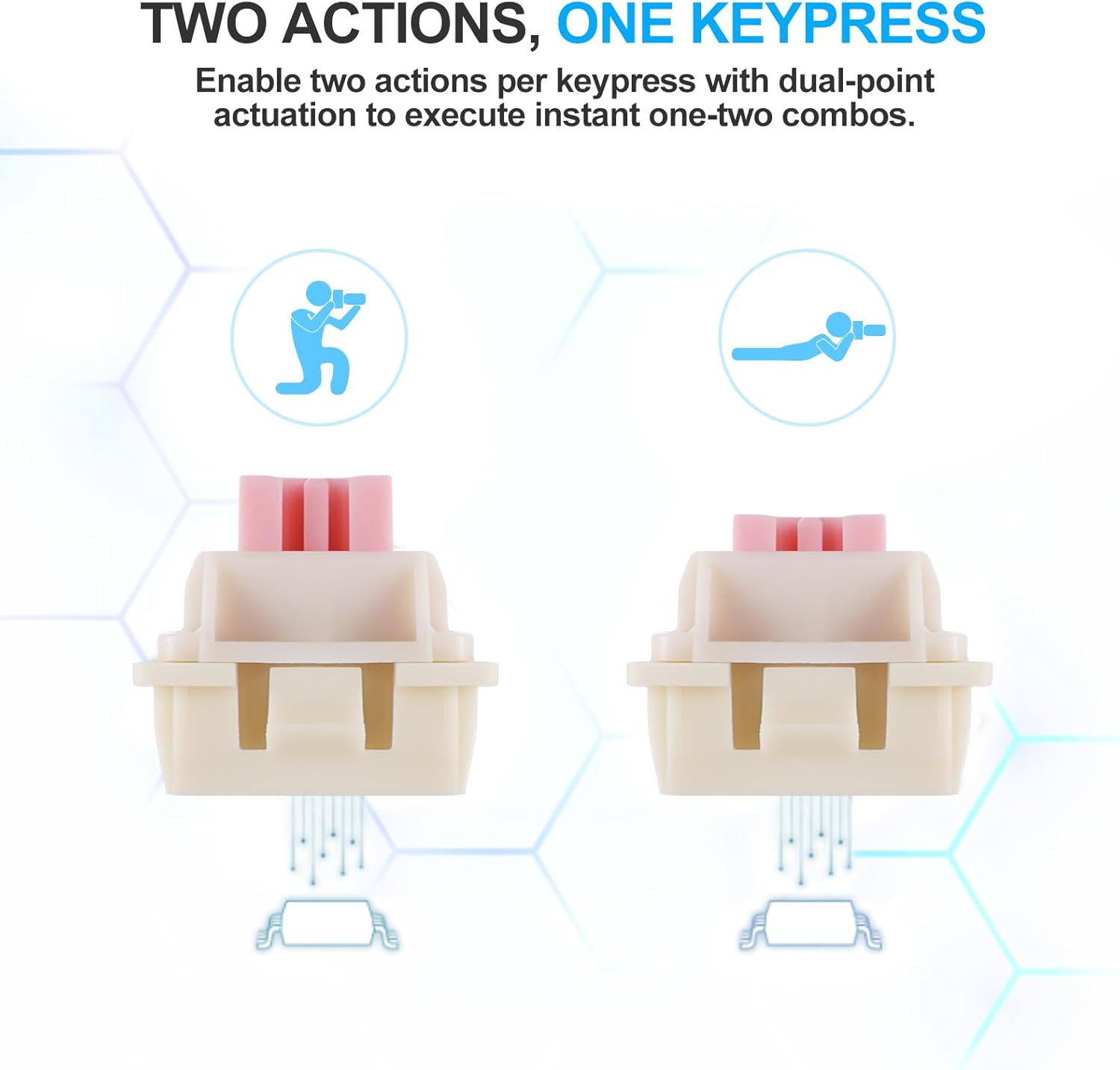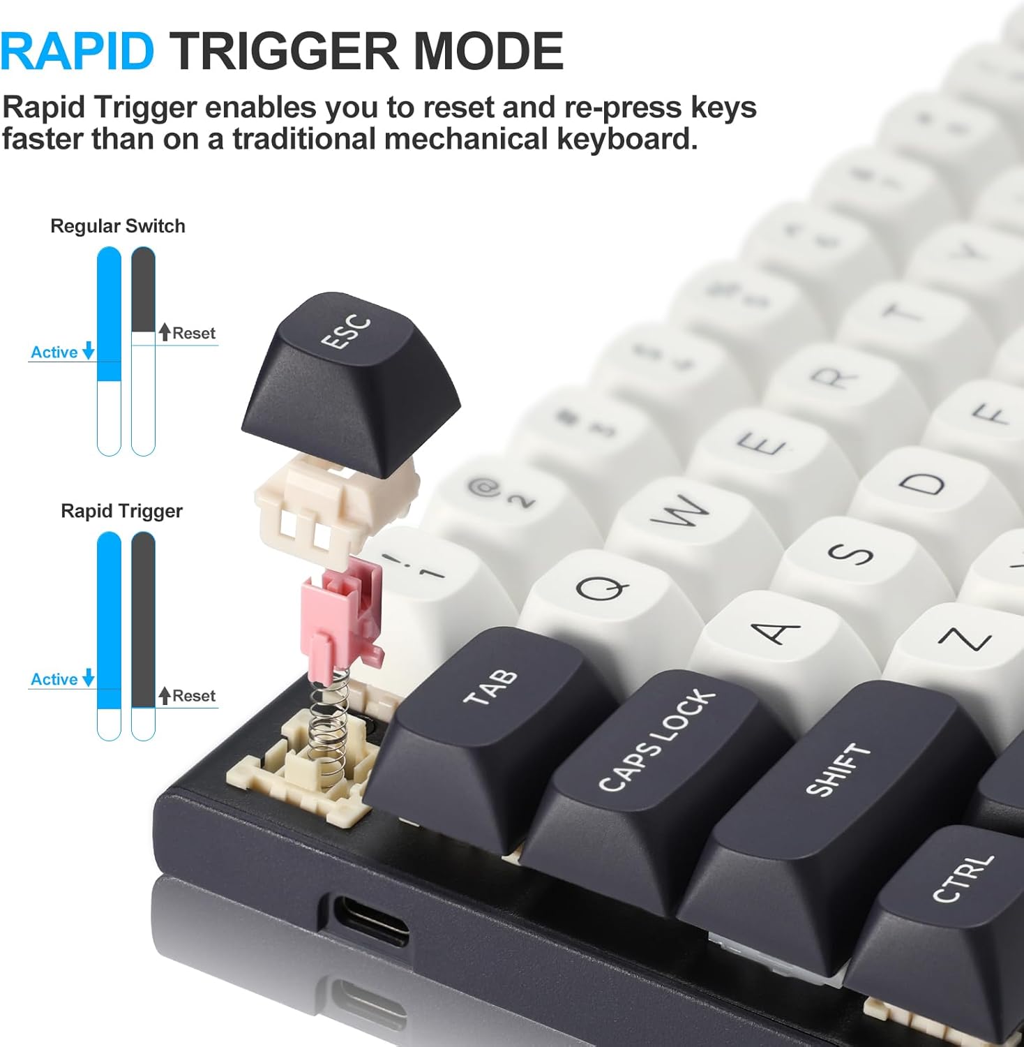 Rapid trigger funksionallığı, sabit sıfırlama nöqtəsini gözləmək əvəzinə açarları sərbəst buraxdıqda dərhal sıfırlamağa imkan verir. Bu, daha sürətli təkrarlanan düymələrə və daha dəqiq nəzarətə imkan verir, xüsusilə FPS və ya ritmə əsaslanan oyunlar kimi rəqabətli oyun ssenarilərində faydalıdır.